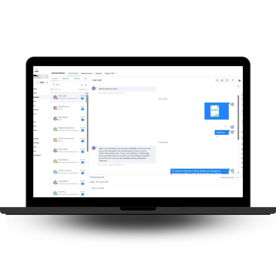 Keep all your messages—SMS, email, Facebook, Instagram, Google Business Messages—in one simple dashboard.