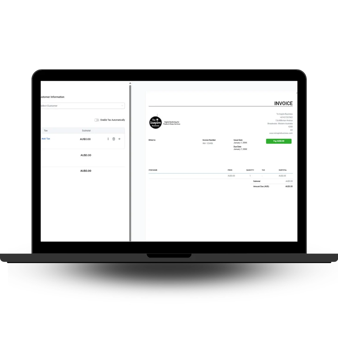 Stop wasting time chasing paperwork. Inspire App lets you create professional quotes, invoices, and job estimates in just a few clicks.